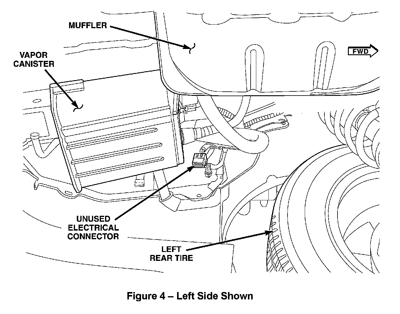 14. Inspect the left and right rear wheel well areas to determine if there is an unused left and right side rear tire pressure monitor electrical connector (Figure 4).