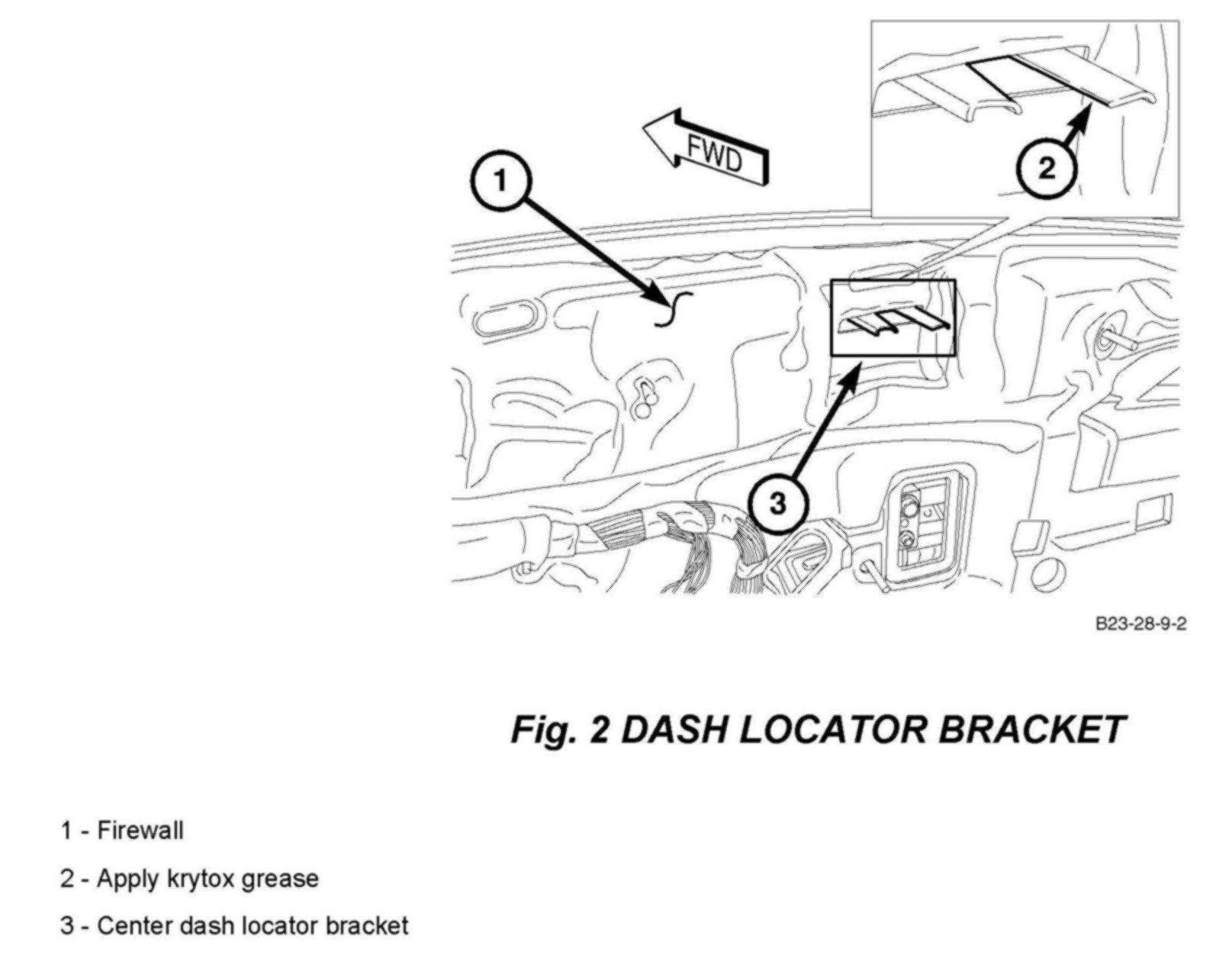 2. Apply two layers of BSR tape to the instrument panel on the center dash locator (Fig 1).