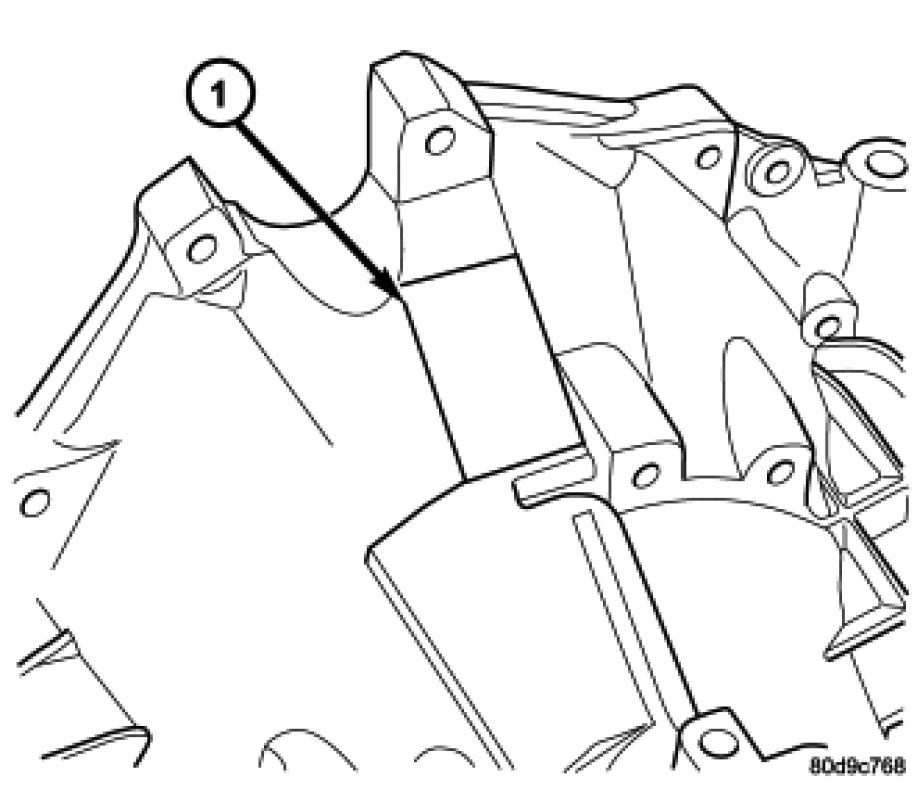 The 41TE transaxle is identified by a barcode label (1) that is fixed to the transaxle case.