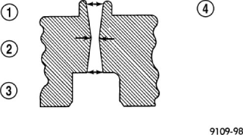 4. Using a small hole gauge and a micrometer, measure valve guides in 3 places top (1), middle (2), and bottom (3). Engine Specifications Replace guides if they are not within specification.