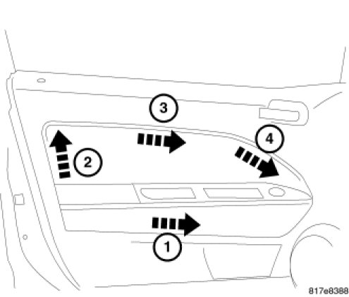 3. Using trim stick C-4755, start at the lower corner and pull in the direction of the arrows. Bolster should unsnap.