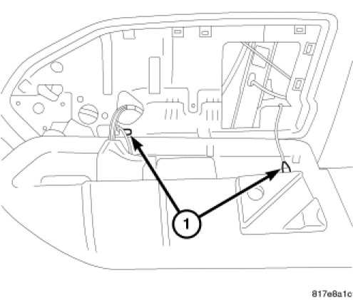 6. Remove bolster by unsnapping plastic tethers (1) from bolster back side of surface.