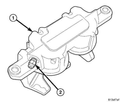 15. Remove caliper bleeder screw (2) from caliper housing (1).