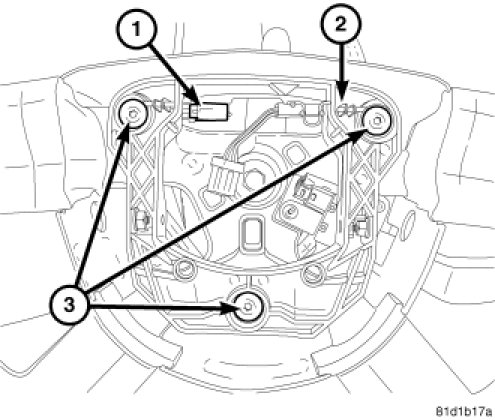 6. Install horn switch mounting screws (3) and tighten screws to 8 Nm (71 ins. lbs.).
