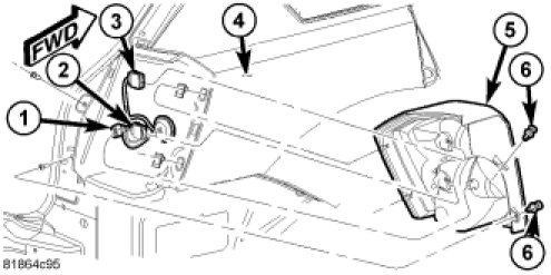 3. Pull straight back on the tail lamp unit (5) to release it from the quarter panel (4).