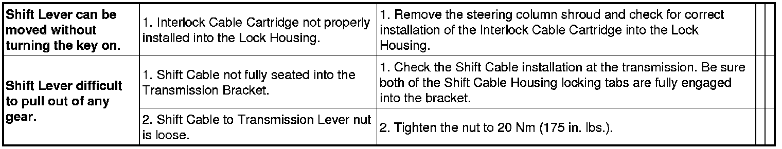 The Interlock Cable is attached to a lever within the Shifter that prevents the Shift Lever from moving out of "Park" without the key (theft prevention). The Interlock Cable adjustment is preset at the factory. When properly adjusted, the Interlock System prevents the key being removed from the Key Cylinder when the Shift Lever is in a position other then "Park".