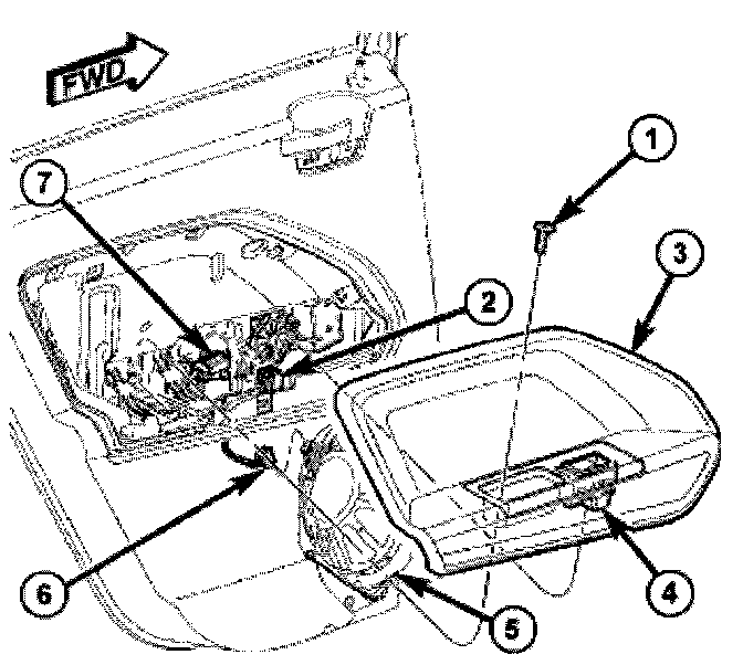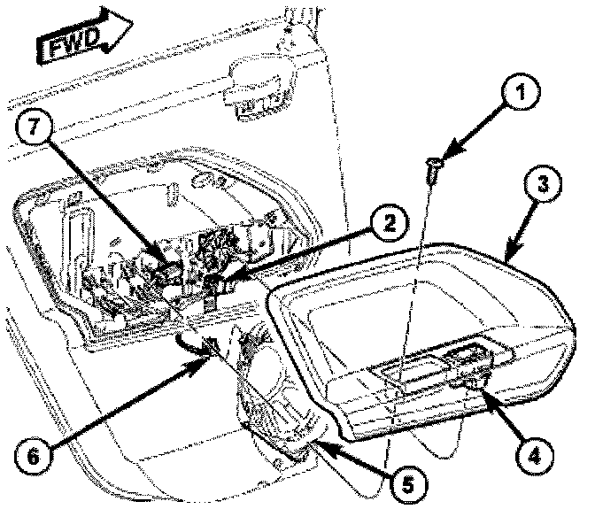 1. Connect wire harness (7) to window switch connector (4).