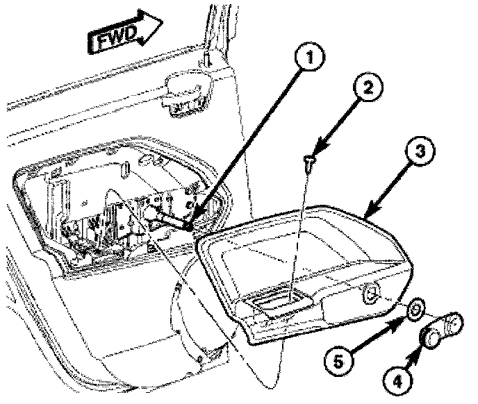 2. If equipped, remove window crank (4) and washer (5) from bolster (3).