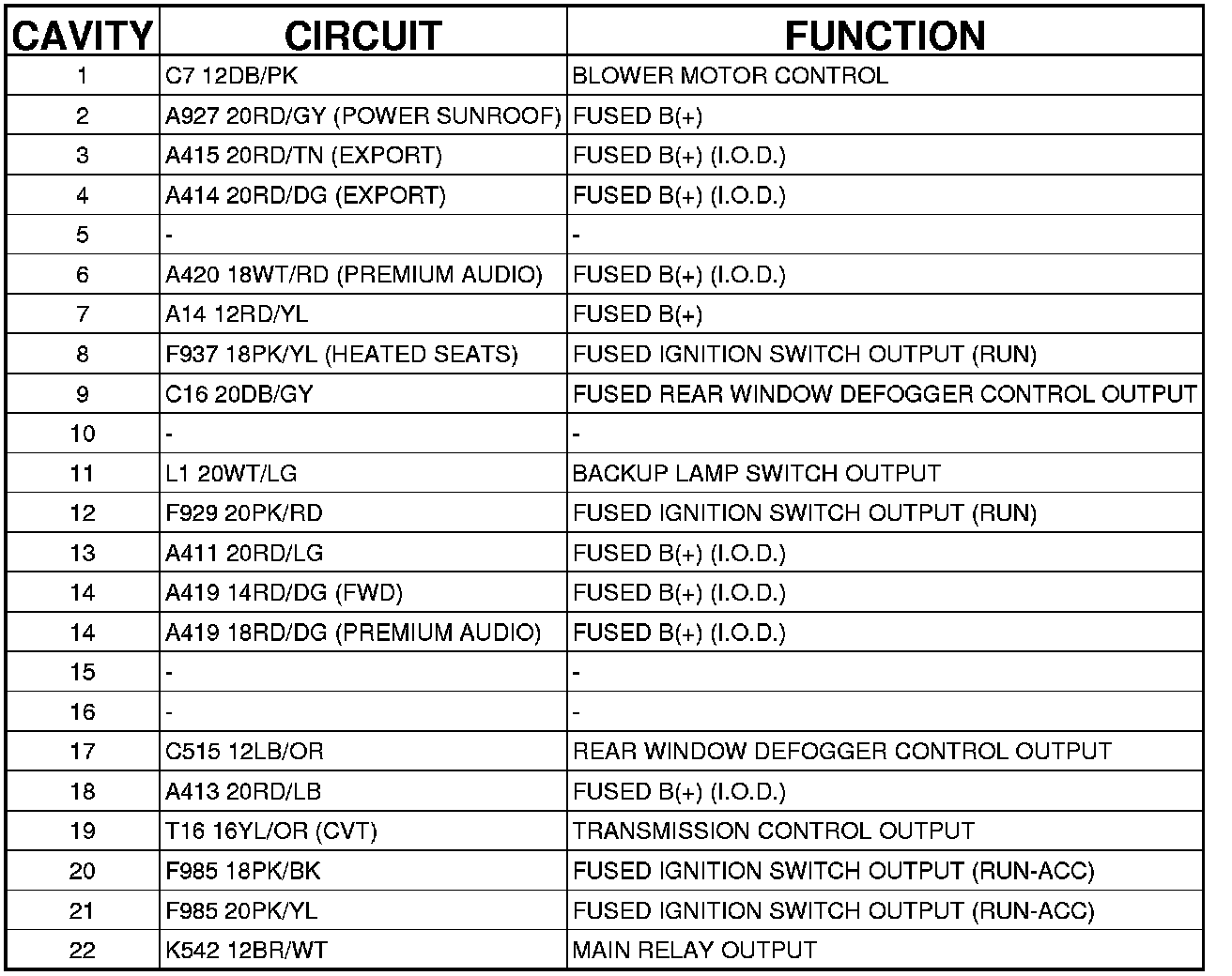 C8 TIPM - (ENGINE COMPARTMENT) 22 WAY