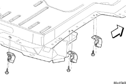 1. Position isolator bracket to underbody and install attaching screws. Tighten bracket screws to frame rail to 8.5 Nm (75 in. lbs.) and bracket screws to the rear panel to 3.7 Nm (33 in. lbs.).