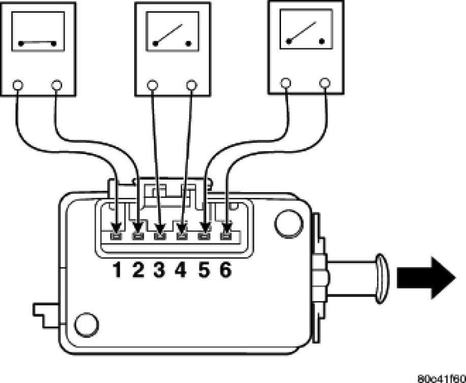 4. With the switch in this depressed position (plunger pushed in), use an ohmmeter to test each of the three internal switches as shown. You should achieve the results as listed in the figure.