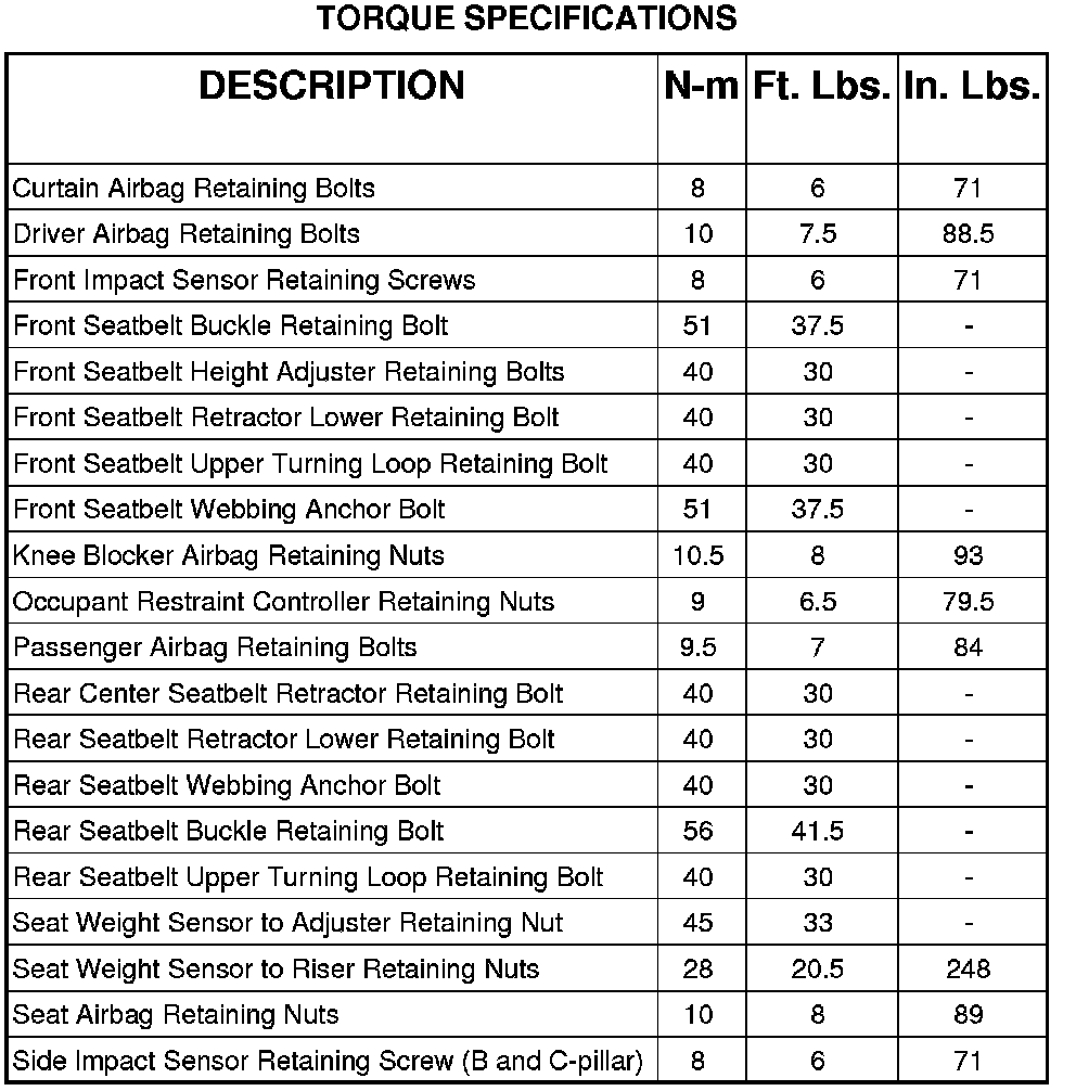 RESTRAINTS - TORQUE SPECIFICATIONS