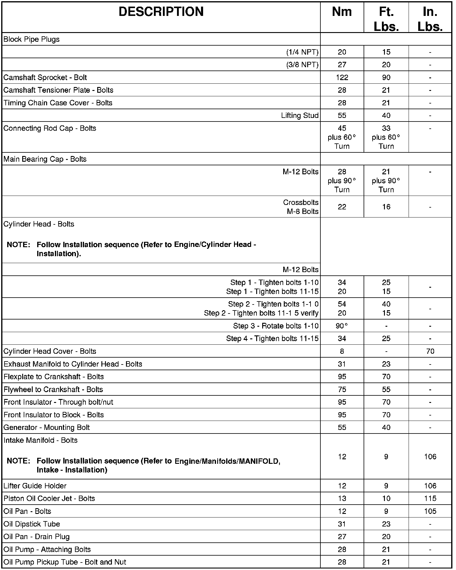 Engine Torque Specifications