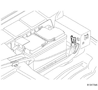 2. Position the Power Distribution Center (PDC) onto the battery tray mounting tabs. Gently apply downward pressure on the PDC until it snaps into place.