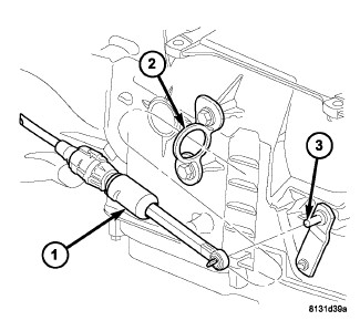 13. Disconnect the gearshift cable (1) from the transmission manual valve lever (3).