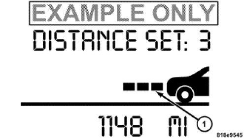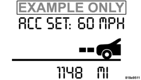The EVIC displays the current ACC system settings. The EVIC is located in the upper part of the instrument cluster between the speedometer and the tachometer. The information it displays depends on ACC system status.