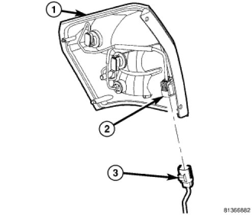 3. From within the trunk, connect the electrical connector (1) to tail lamp unit (2).
