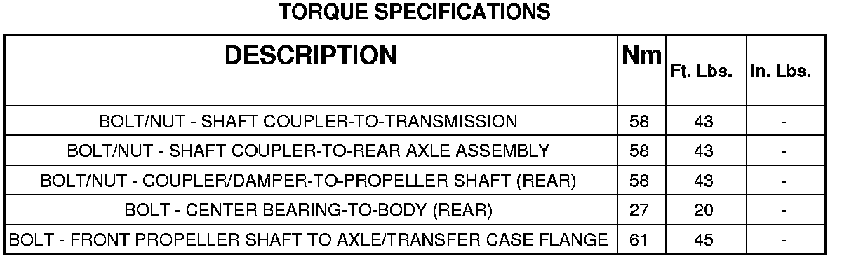 SPECIFICATIONS - PROPELLER SHAFT