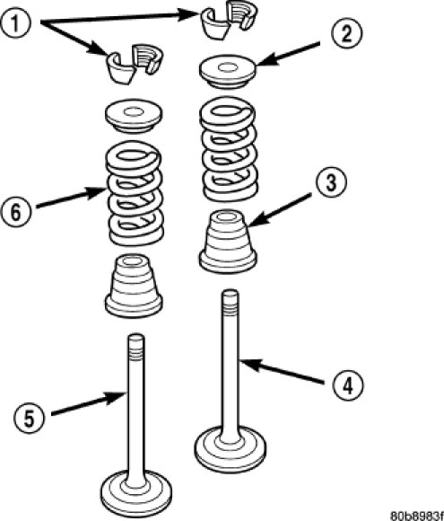 4. Check the valve spring installed height after refacing the valve and seat. The installed height for both intake and exhaust valve springs must not exceed 46.0 mm (1.81 in.)