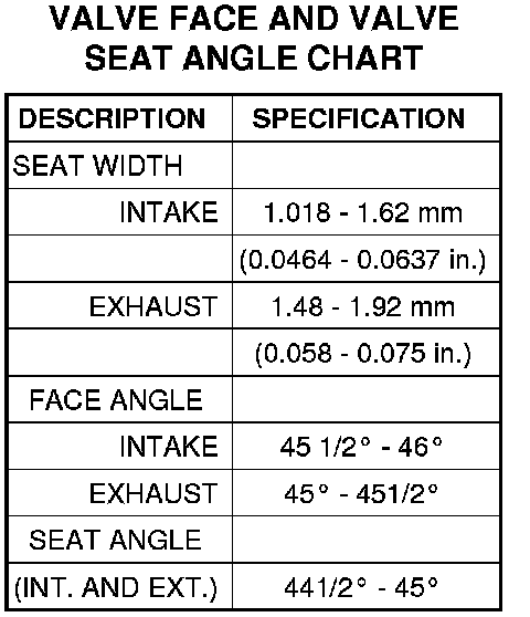 6. The valve face must maintain a face angle of 45.5 - 46.0 degrees angle for the Intake, and 45.0 - 45.5 degrees angle for the exhaust.