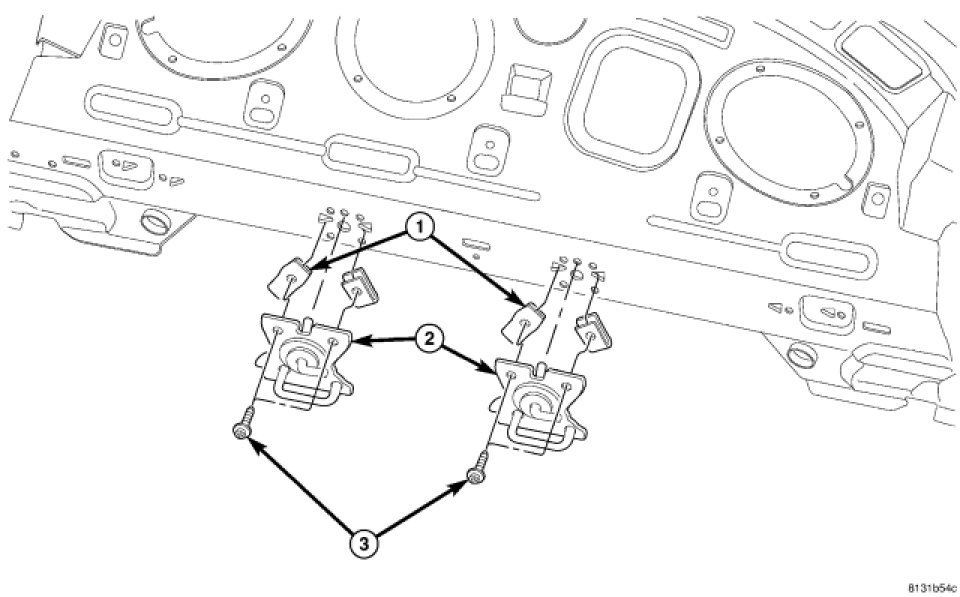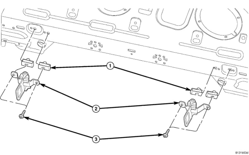 2. Place the sedan back seat striker (2) into position and Install attaching screws (3).
