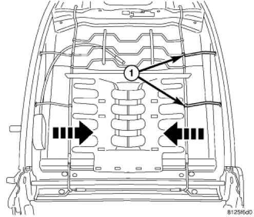 3. Place lumbar mat onto seat back frame and insert the upper support wires (1) into the frame.