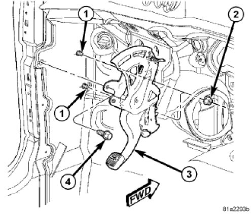 1. Install parking brake lever (3) over mounting studs (1).
