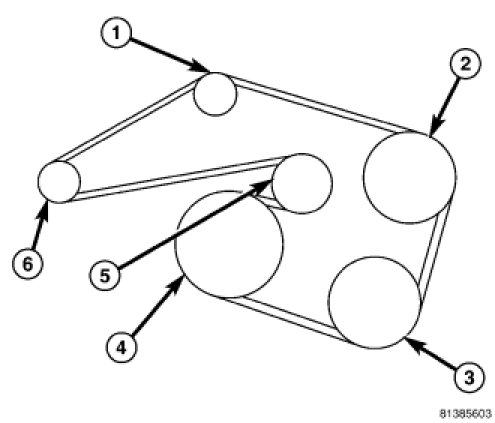 CAUTION: When installing the serpentine accessory drive belt, the belt MUST be routed correctly. If not, the engine may overheat due to the water pump rotating in the wrong direction.