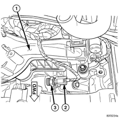 4. Disconnect electrical connector (2) from sensor (3).