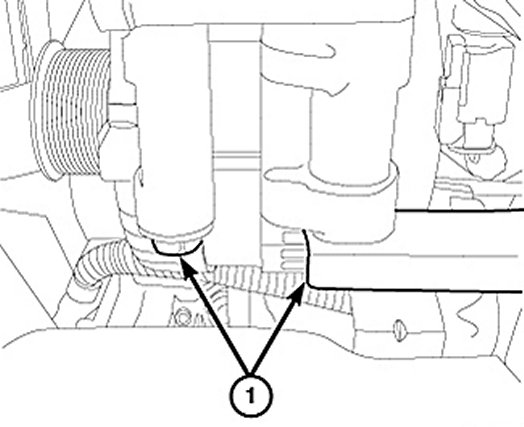 5. Install the lower mounting bolts (1) and tighten to 55 N.n (41 ft. lbs).