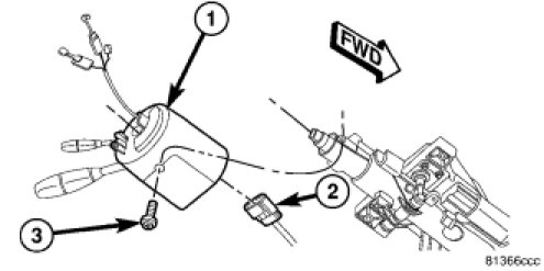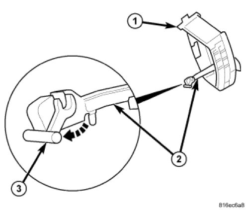 8. Back out the set screw (1) through the access hole (3) in the steering column control module (SCCM) (2) securing the multi-function SCCM assembly.