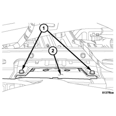 29. Remove the two upper mounting screws (1) from the steering column (2).