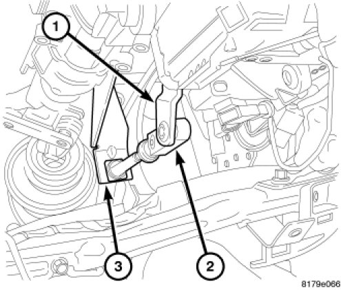 17. Unsnap and move the adjustment handle locking tab (3) forward as shown unlatching the handle (2) from the column.