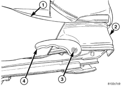 6. Position the seat cushion cover flaps back and install the recliner handle (4) and screw (3).