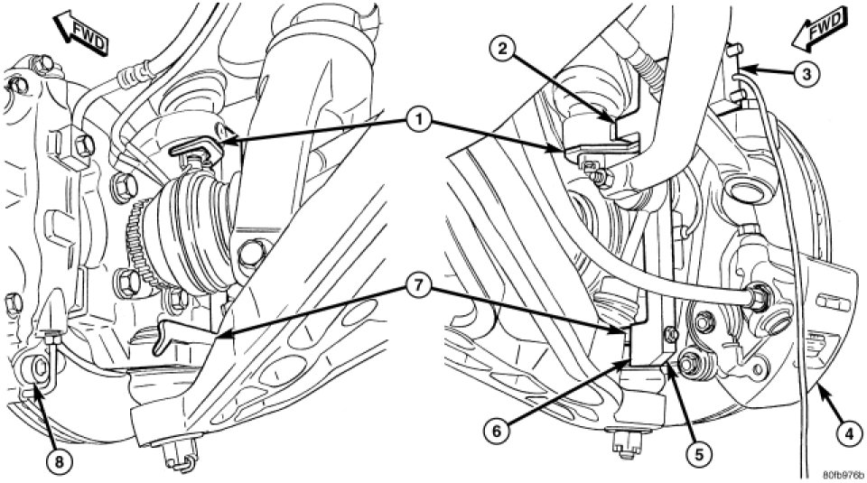 CAUTION: Prior to any cam bolt rotation, cam bolt lock nuts must be loosened, allowing lower control arm mounting brackets to spread, thus allowing free movement of control arm bushings. If not performed, serious bracket bending, weld breakage of cam retainer, free cam and cam bolt shank fracturing, or thread damage can occur. It may be necessary to tap bracket ears away from bushings to allow unrestricted cam bolt movement.