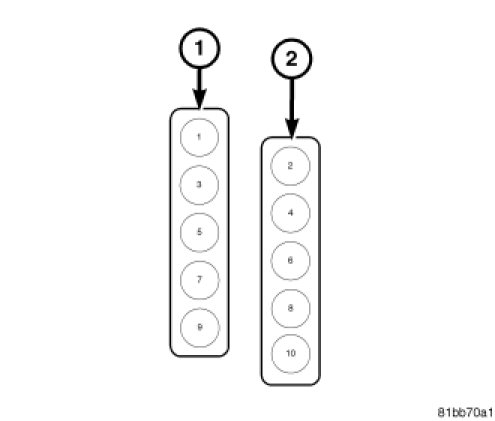 The left bank (1) is also referred to as bank 1. The right bank (2) is also referred to as bank 2.
