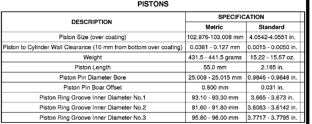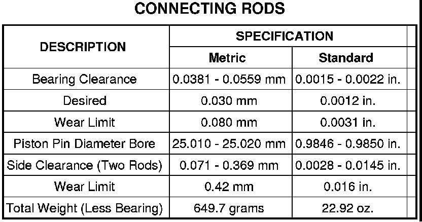3. Remove the bearing cap and compare the width of the flattened Plastigage with the metric scale provided on the package. Locate the band closest to the same width. This band shows the amount of clearance in thousandths of a millimeter. Differences in readings between the ends indicate the amount of taper present. Record all readings taken. Specifications Plastigage generally is accompanied by two scales. One scale is in inches, the other is a metric scale.