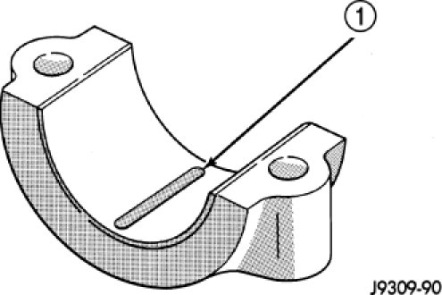 2. Place a piece of Plastigage across the entire width of the bearing shell in the cap approximately 6.35 mm (1/4 inch) off center and away from the oil holes. (In addition, suspect areas can be checked by placing the Plastigage in the suspect area). Torque the bearing cap bolts of the bearing being checked to the proper specifications.