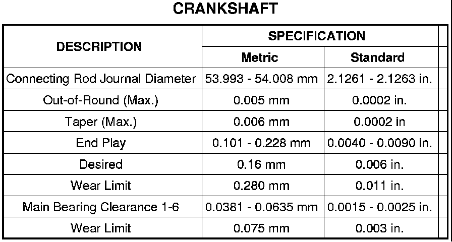 2. The total clearance of the main bearings can only be determined by removing the weight of the crankshaft. This can be accomplished by either of two methods: