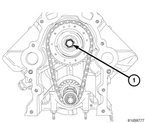 TIMING CHAIN AND CAMSHAFT SPROCKET TORQUEInstall camshaft sprocket retaining bolt (1) and tighten to 160 Nm (118 ft. lbs.).