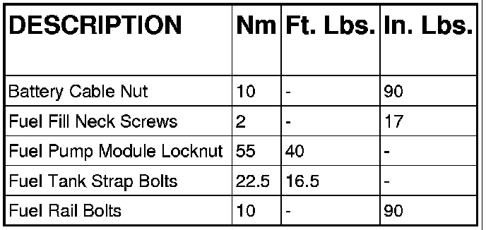 Fuel Delivery Torque Specifications