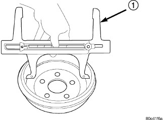 5. Using a Brake Shoe Gauge C-3919 (1) or equivalent, measure the inside diameter of the brake drum at the center of the shoe contact area. Tighten the Gauge setscrew at this measurement.