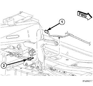 CAUTION: A NEW parking brake cable equalizer (2) must be installed when servicing the parking brake cables or lever. The equalizer has an integrated bent nail tensioner that needs to be stretched upon installation placing the correct tension on the cables.