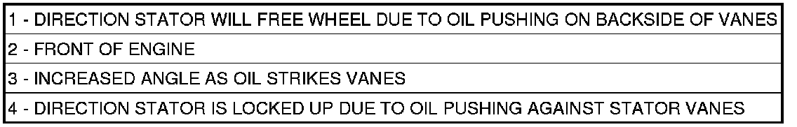 Torque multiplication is achieved by locking the stator's over-running clutch to its shaft. Under stall conditions (the turbine is stationary), the oil leaving the turbine blades strikes the face of the stator blades and tries to rotate them in a counterclockwise direction. When this happens the over-running clutch of the stator locks and holds the stator from rotating. With the stator locked, the oil strikes the stator blades and is redirected into a "helping" direction before it enters the impeller. This circulation of oil from impeller to turbine, turbine to stator, and stator to impeller, can produce a maximum torque multiplication of about 2.4:1. As the turbine begins to match the speed of the impeller, the fluid that was hitting the stator in such as way as to cause it to lock-up is no longer doing so. In this condition of operation, the stator begins to free wheel and the converter acts as a fluid coupling.