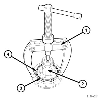 66. Using bearing cup puller 6062A (1), remove outer output bearing cup (2).