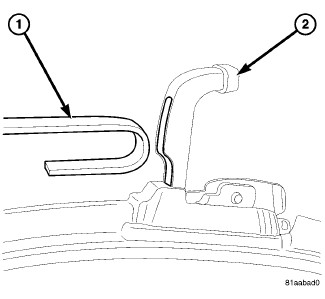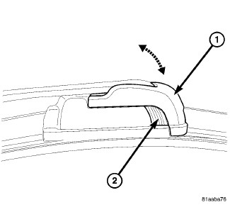 2. Slip the wiper arm (1) into the wiper blade (2) and pull away from vehicle until blade pivot is fully seated in the arm hook.