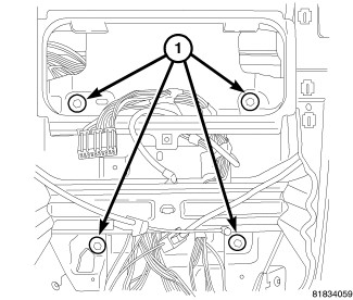 5. Install four fasteners (1) behind center bezel and one behind glove box.