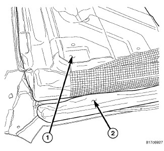9. Remove the foam insert (2) from the seat back assembly (1).
