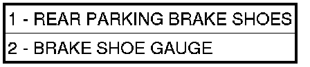 9. Place Gauge (2) over the parking brake shoes (1) at their widest point.