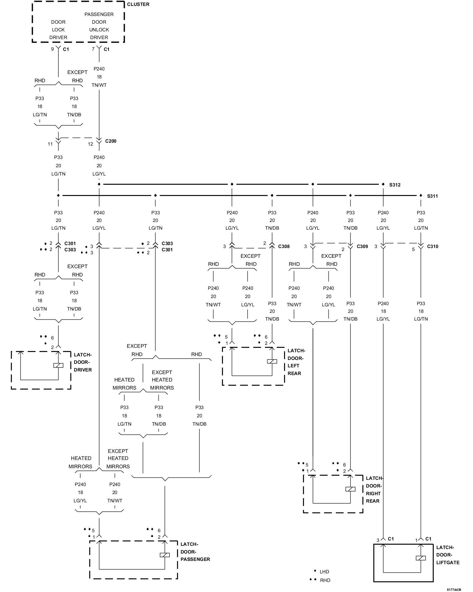 2. (P240) PASSENGER DOORS UNLOCK DRIVER WIRE OPEN